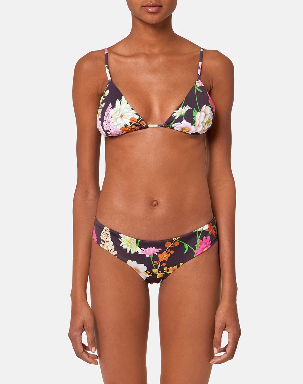 Tessuto morbido e confortevole per questo top a triangolo caratterizzato dalla stampa Royal Flower, da abbinare allo slip in coordinato.