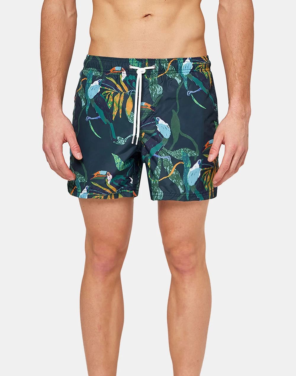 Stampa Toucanets per il costume boxer da uomo in poliestere riciclato dallo spirito ricercato e inedito.