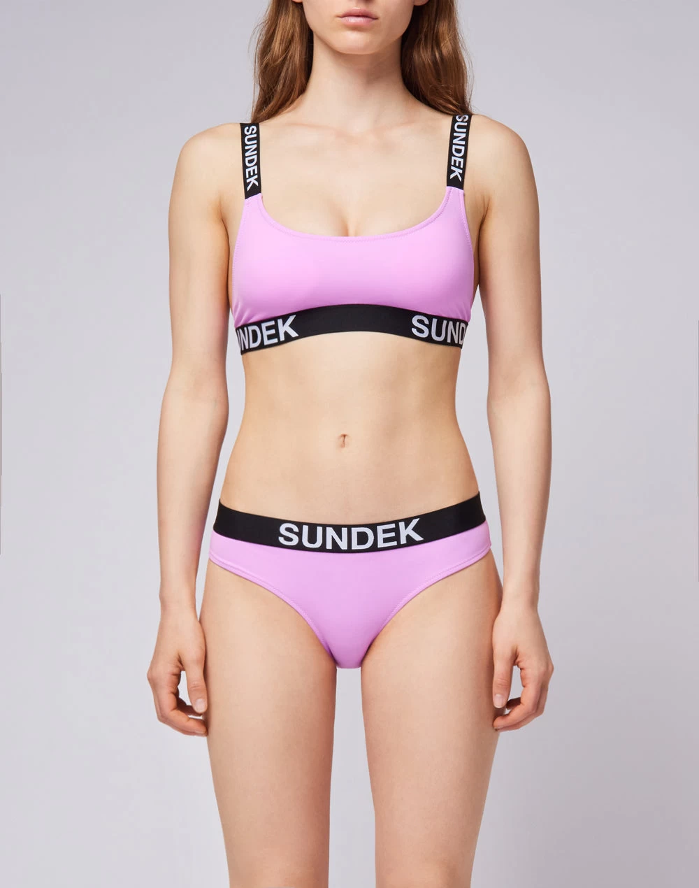 Realizzato in tessuto ecosostenibile e confortevole, questo reggiseno balconette non imbottito è rifinito da un elastico con logo Sundek jacquard a contrasto. Perfetto se vuoi lasciare il segno con un tocco sportychic.