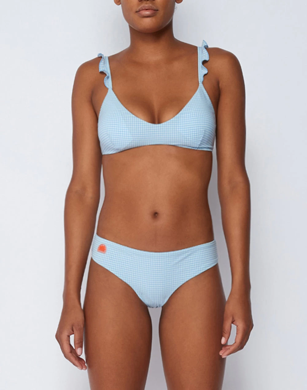 Completa il reggiseno in coordinato con questo slip culotte in vichy con arricciatura femminile sul retro. Sfoggerai un bikini da donna ricercato e perfetto sotto il sole.