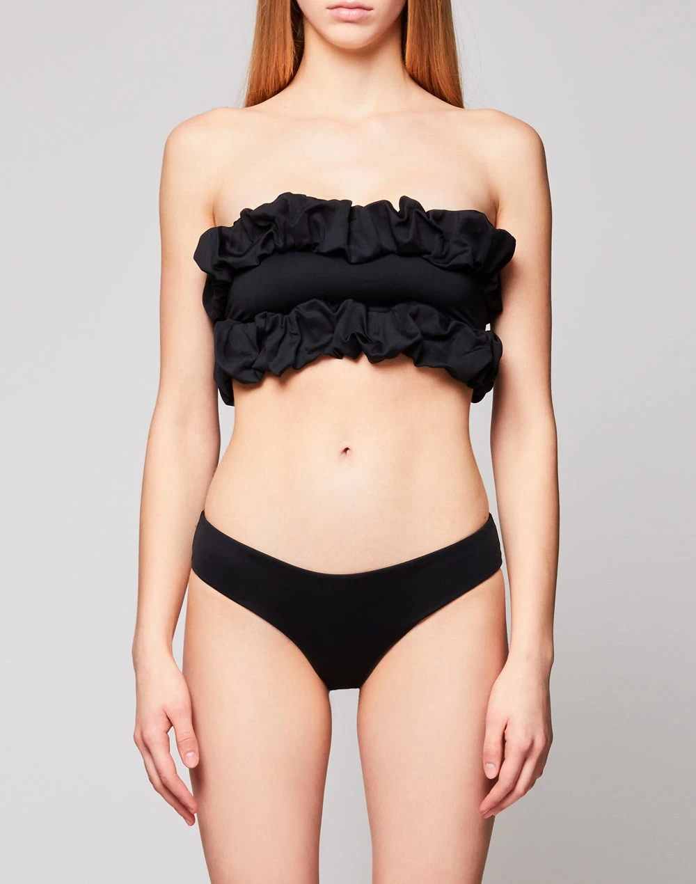 Mostra il tuo lato più romantico con questo bikini top a fascia con rouches. Indossalo anche sopra un pantalone o una gonna, per ottenere uno stile ricercato anche al di fuori della spiaggia.