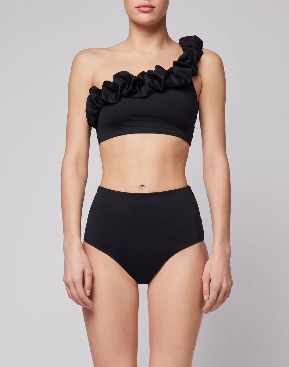 Distinguiti e mostra il tuo lato romantico con questo top monospalla con una rouche che diventa perimetro superiore del top e spallina allo stesso tempo. perfetto da indossare anche sopra un pantalone più elegante o una gonna, per occasioni più formali, oltre che per i tuoi momenti sulla spiaggia.